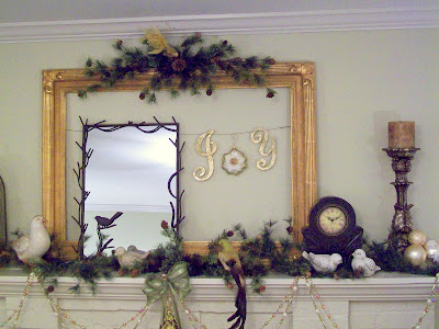 I was so excited I decided to do my mantel a little different this year using her gift and birds I gathered from around the house.