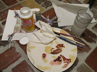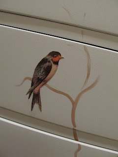 I found the vintage bird graphics at The Graphics Fairy, printed them on card stock and used Mod Podge to decoupage them onto the front of the chest.